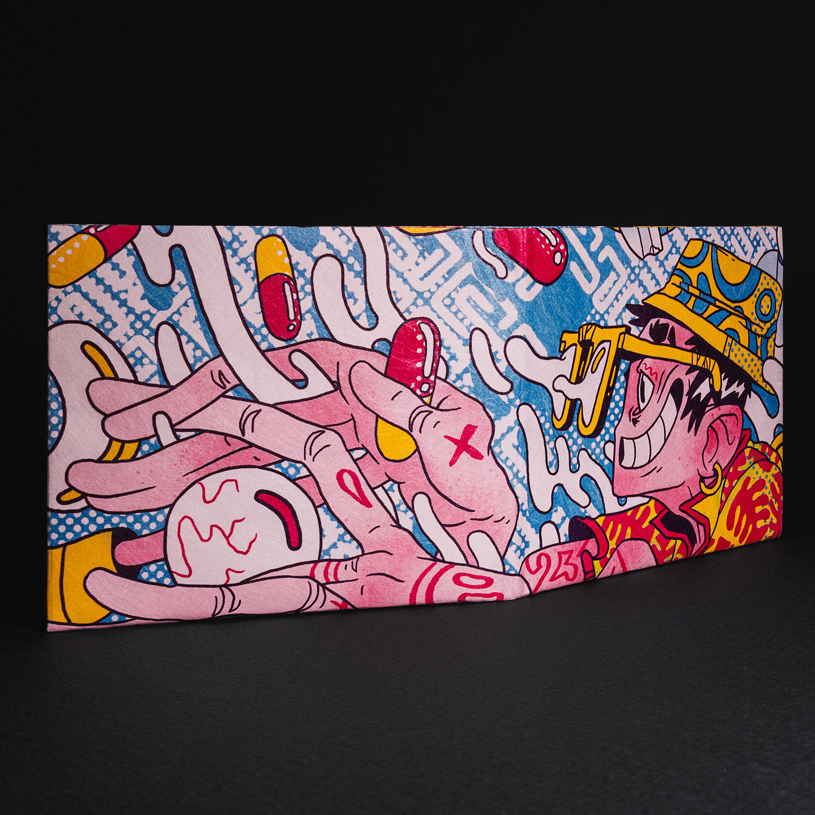Когда мы говорим о произведениях искусства, то представляем себе полотна масляных красок на холстах или изысканные скульптуры. Однако современное искусство давно вышло за рамки традиционных форм и нашло свое место даже там, где его меньше всего ожидают — например, на аксессуарах повседневного использования. Сегодня я хочу рассказать вам об одном таком удивительном произведении — принте для кошелька New Wallet, созданном Дмитрием aka dmitry_os. Этот молодой профессиональный иллюстратор сумел перенести хаос, цвет и дух культового фильма "Страх и ненависть в Лас-Вегасе" на поверхность нашего скромного кошелька. И сделано это было с такой мастерской легкостью, что сам Хантер С. Томпсон, вероятно, не смог бы остаться равнодушным.