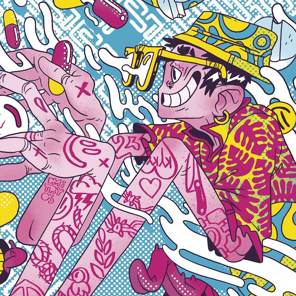 Результат превзошел все наши ожидания. Принт, созданный Дмитрием, представляет собой настоящий взрыв красок, форм и эмоций. Каждая деталь этого произведения словно дышит жизнью, но это не обычная жизнь — это жизнь, преувеличенная до крайности, раскрашенная яркими, почти болезненными тонами. Перед вами разворачивается целый мир: машины, похожие на монстров, пейзажи, которые искажаются, как в зеркале комнаты смеха, и фигуры, чьи очертания теряются в бесконечной психоделической спирали.